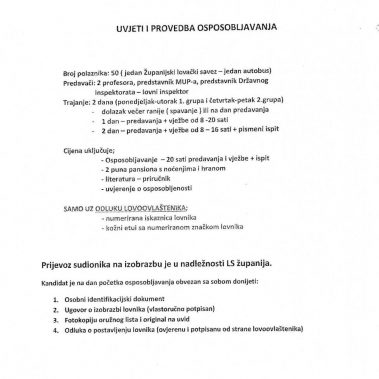 Molimo da se detaljno držite uputu o uvjetima i provedbi programa za osposobljavanje lovnika i da najkasnije do 01.12.2019. dostavite popis kandidata i dokaz o uplati.